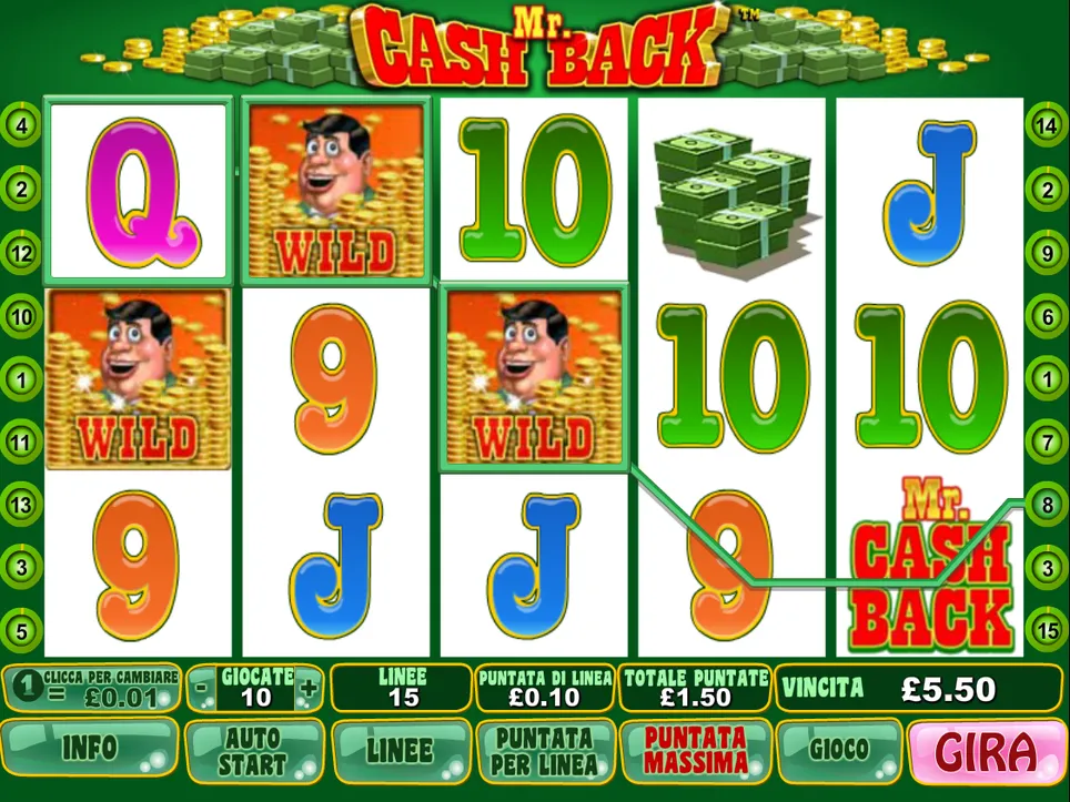 - As the main character, Mr. Cashback is the most important person as the wild symbol and the scatter symbol is the logo.