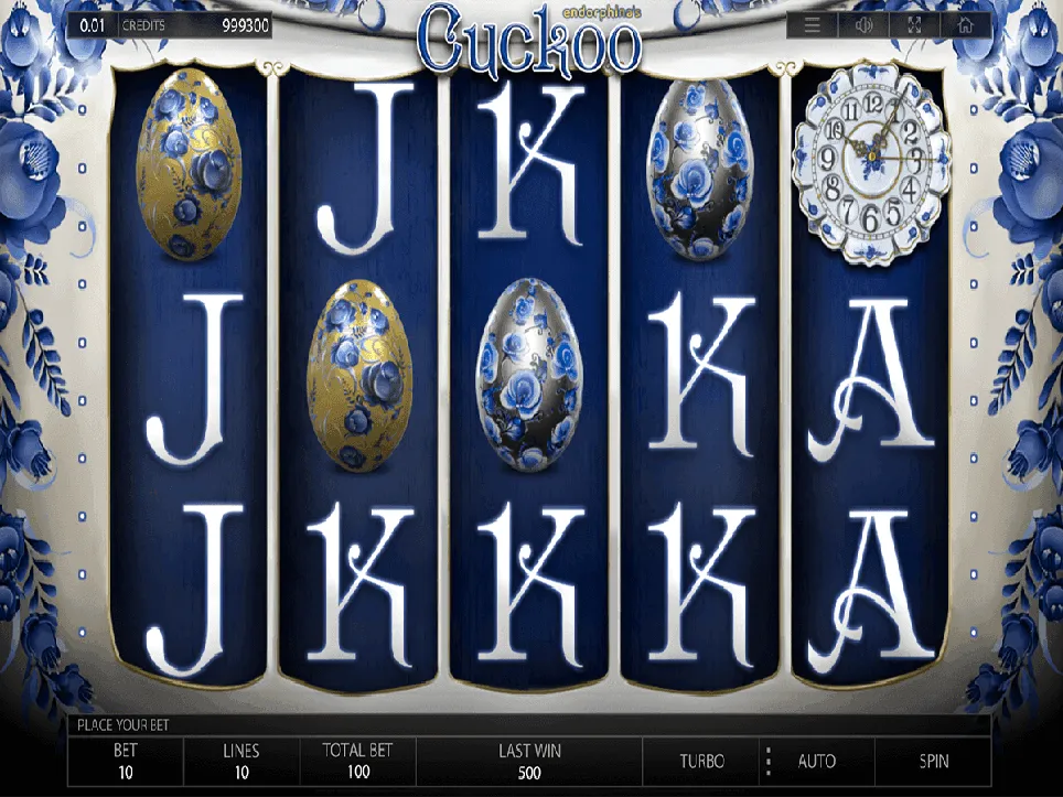 Cuckoo is a slot game from Endorphina with a rather unusual theme. The name of this game comes from the English word for cuckoo, which here refers to the cuckoo clock. The lower symbols of Endorphina’s slot are the well-known poker symbols, while the main ones are different colored eggs.