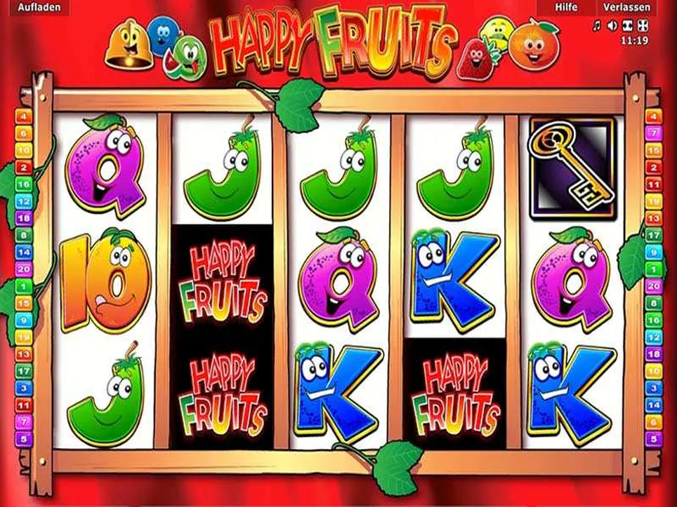 Today we would like to introduce you to a slot machine that not only gave us a lot of fun, but also convinced us with its interesting, exciting and, with a little luck and the right strategy, extremely lucrative winnings. We are talking about Happy Fruits from Novoline. The fruits on the reels of this slot game are indeed overjoyed, because they are depicted in a funny cartoon style and thus convey good mood. The fruits appear in the form of numbers or letters with their own faces full of happiness!