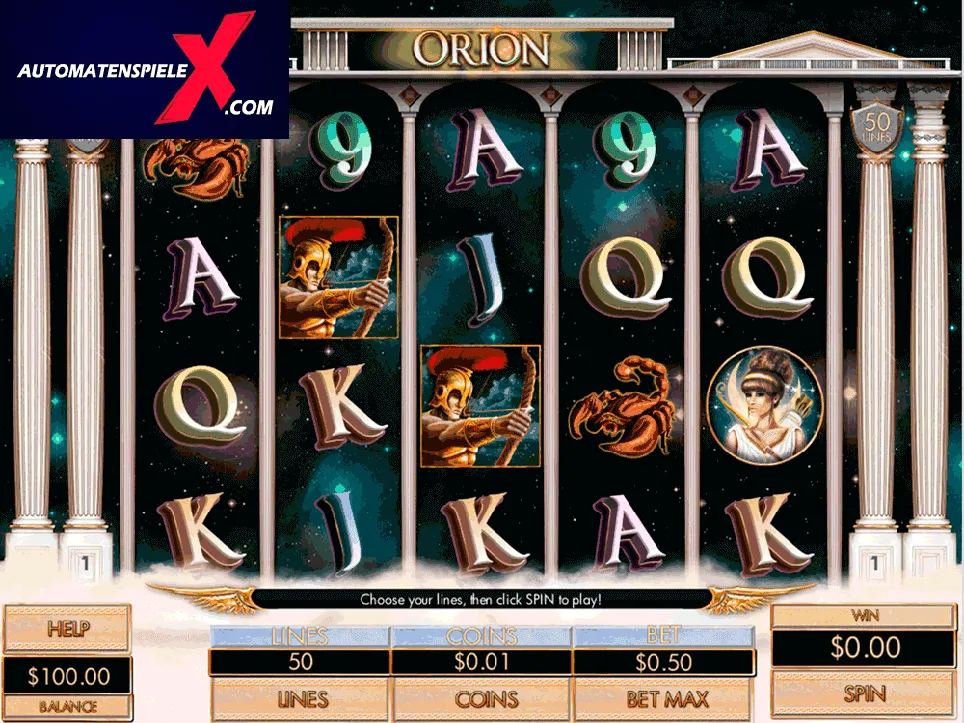 50 selectable paylines ensure that the winning options are not forgotten either. The slot machine can be operated with real money and of course there is also the possibility to play Orion for free, without registration. Also you can play old slot machines for free without registration.