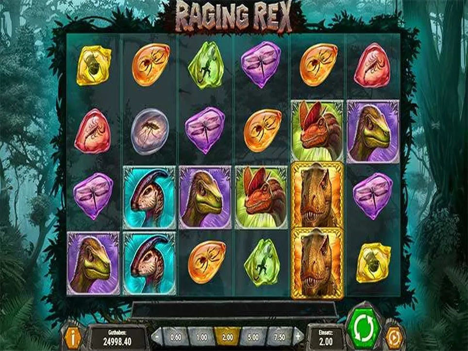 High volatility always makes us also recommend that you play Raging Rex for free without registration. This allows players to take a look at the risk of the game without the potential for loss.