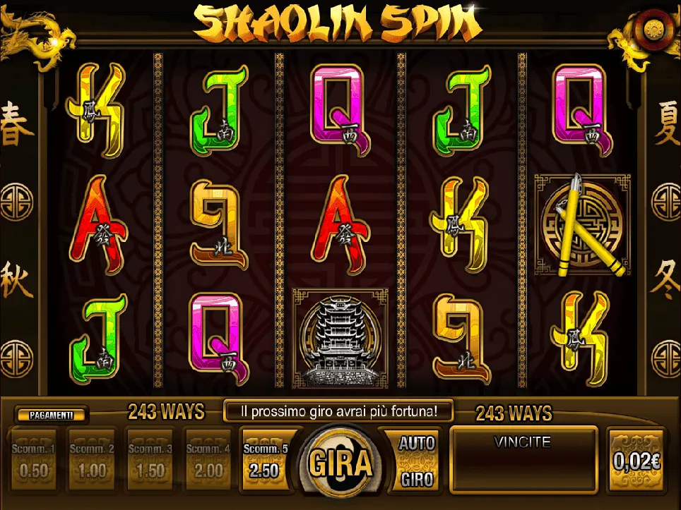 - Shaolin Spin free to play of course also means being able to reach the free spins and receive the bonus of this round. Three scatter symbols stand for ten free spins and all wins you get here will pay you with a bonus and multiplier of x3.