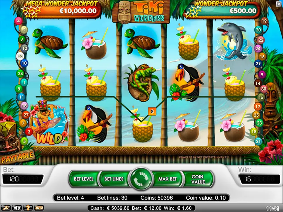 Is to pay tribute to the game developers Tiki Wonders by Net Entertainment, for what they have created one of the most beautiful in graphic design and the most nice, bright, slot games that work wonders and uplift all who visit it. Is carefully thought out and five game slot machines and thirty win lines on which it is simply impossible to look at and slot machines online. They are so colorful and charming that create the mood festive atmosphere. And with this in mind, good luck will be on our side.